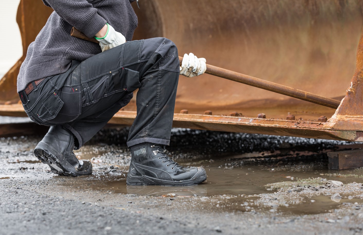 Unsere Heavy Duty Schuhe bieten natürlich auch den gewohnten Schutz, den ihr von PUMA® Safety kennt. Fiberglaskappe und der flexible FAP® Durchtrittschutz schützen vor herabfallenden Gegenständen und spitzen Objekten. Die rutsch- und ölresistente TPU-Laufsohle sorgt dafür, dass ihr selbst auf glatten oder schmutzigen Untergründen festen Halt habt – egal, wie hart der Winter zuschlägt.
